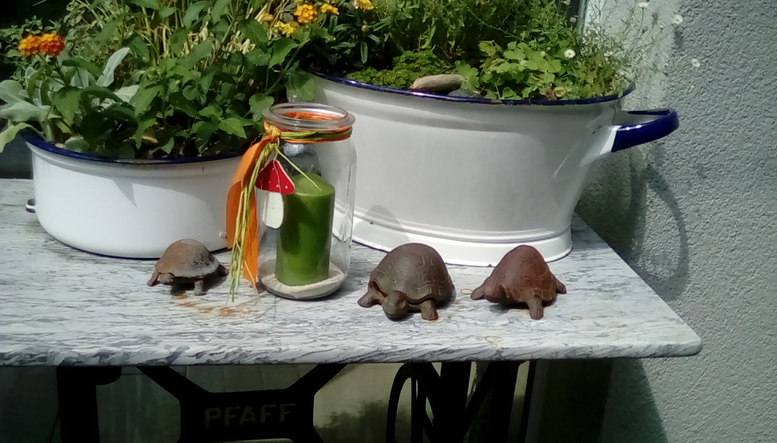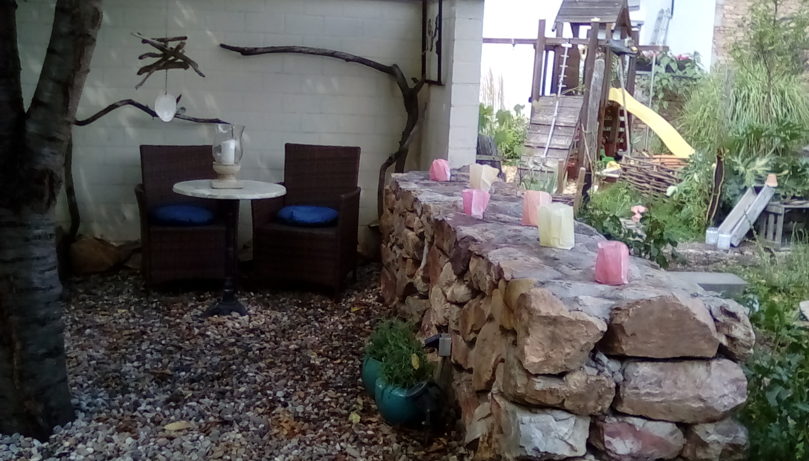 Für die Gärten in der Dämmerung haben wir uns heute Vormittag noch mal mächtig ins Zeug gelegt und überall Windlichte verteilt.